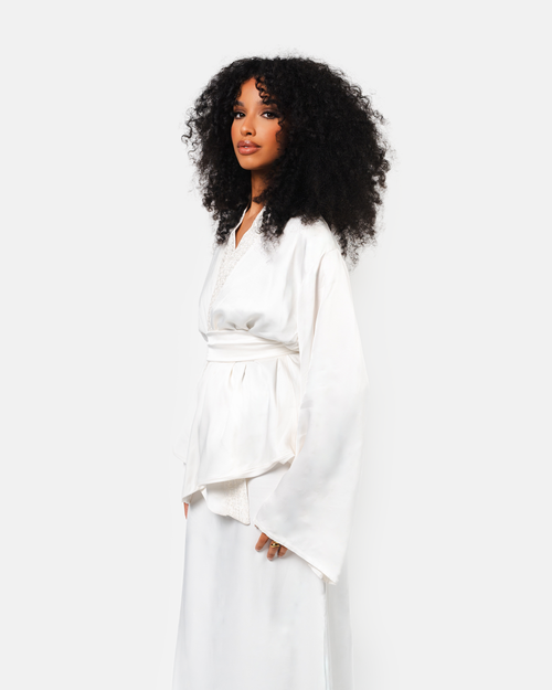 Chaque pièce raconte une histoire à travers la broderie faite main et la précision du geste artisanal, entre lignes contemporaines et héritage traditionnel.